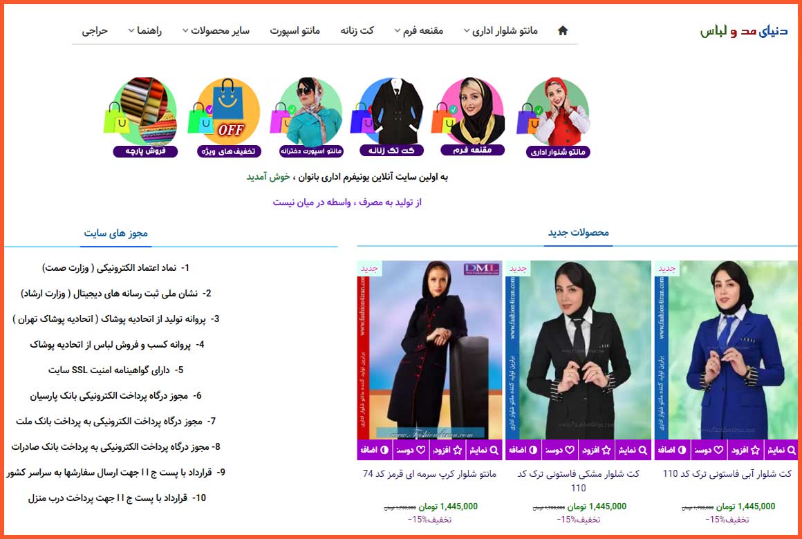 02 مهر مد و فشن مرکز فروش مانتو اداری در کرمان ارسال شده توسط جواد صادق زاده 1401-10-17 0 مرکز فروش مانتو اداری در کرمان مژده به همشهریهای کرمانی، شما به راحتی مانتو اداری خود را در شهر زیبای کرمان خریداری کنید. با خرید از... ادامه مطلب